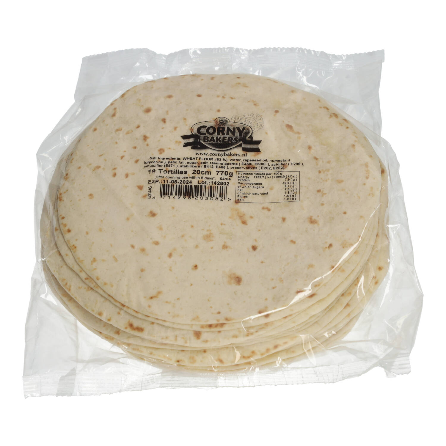 FLOUR TORTILLAS 8"/20CM CB (AMB) 6/18ST aantal